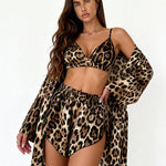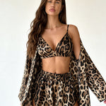 The Kelly Pajama Set is made for those who love bold style with a refined edge. Featuring an intense leopard print on silky-smooth satin, this 3-piece set blends sensuality, comfort, and effortless elegance.