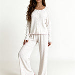 Finished with scalloped ruffle hems, this set is the perfect blend of cozy, cute, and effortlessly feminine , made for moments of pure relaxation.